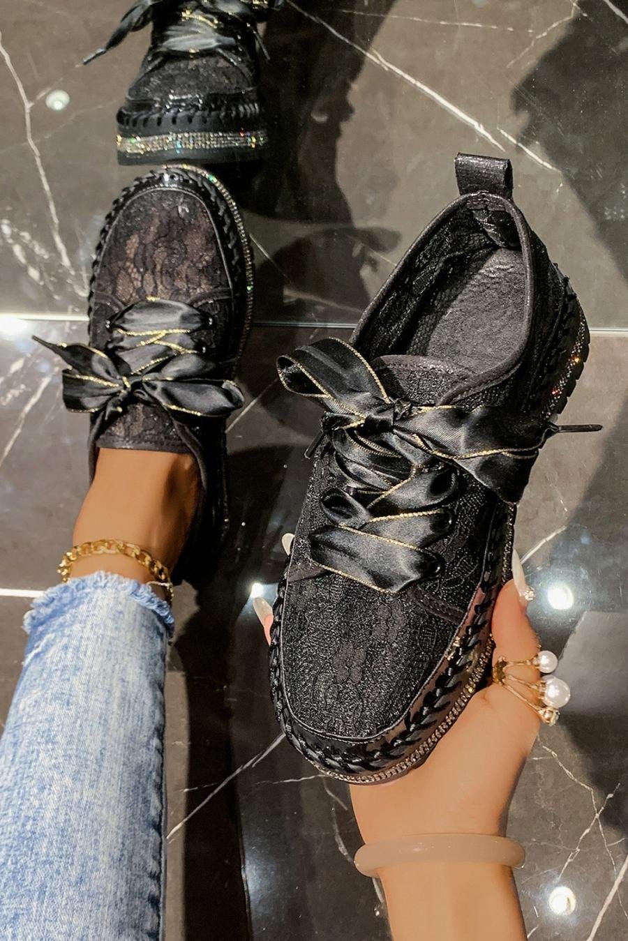 - Le Design En Maille Florale Complexe Ajoute Une Touche De Sophistication À Votre Collection De Chaussures, Idéale Pour Les Personnes Avant-Gardistes.